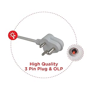 A high quality plug for safety during electrical fluctuations. Over Load Protector for long life of the motor.